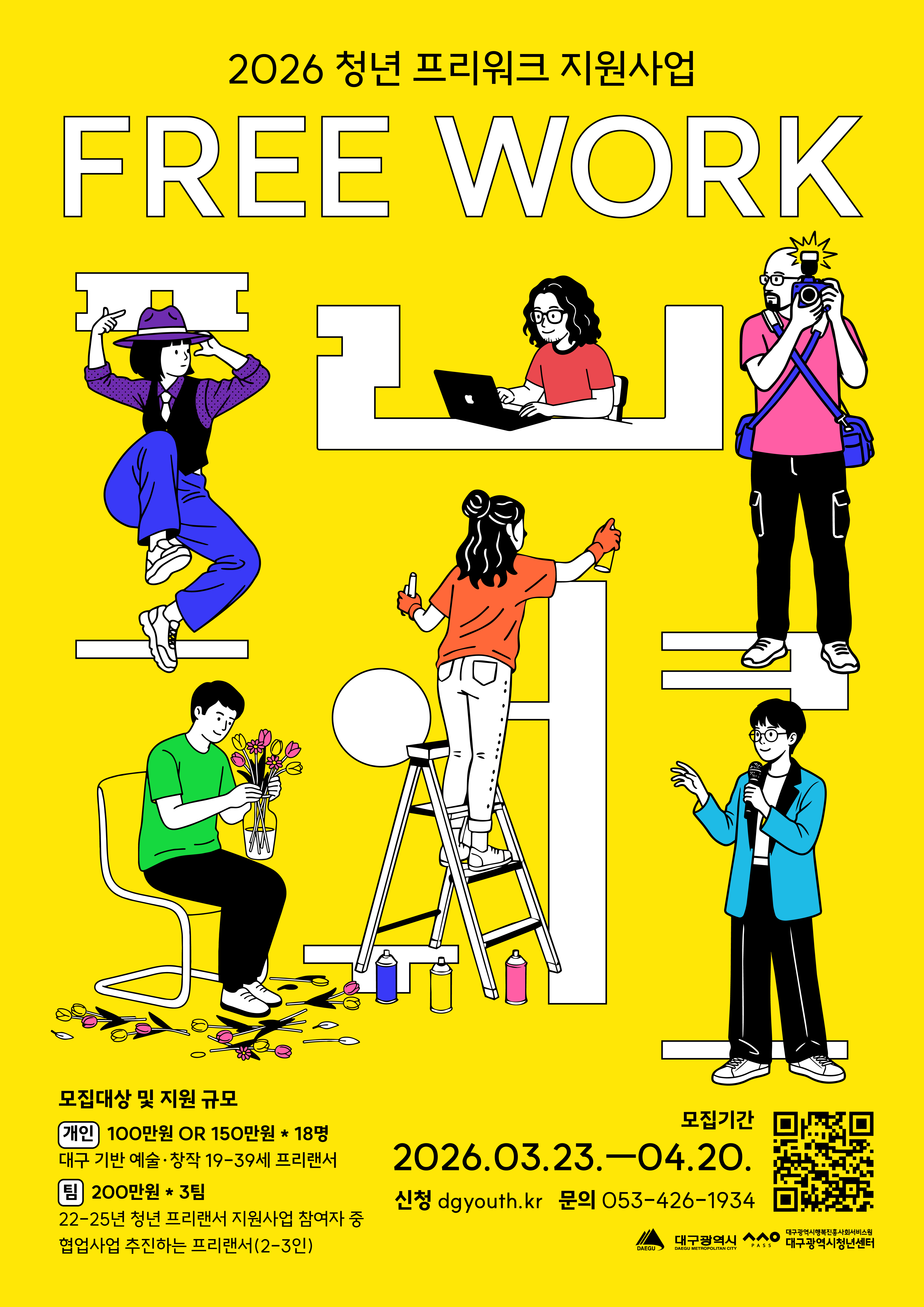 2026 청년 프리워크 지원사업 모집 안내작성자 : 젊프 작성일 : 26-03-23 대구광역시청년센터