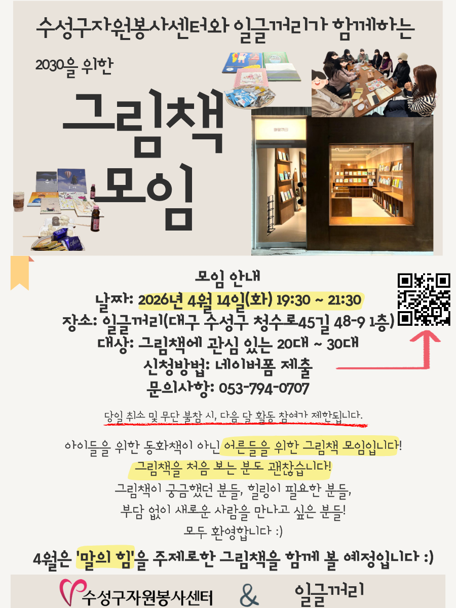 [수성구자원봉사센터] 그림책 모임 참여자 모집! with 일글꺼리작성자 : 박소현 작성일 : 26-03-24