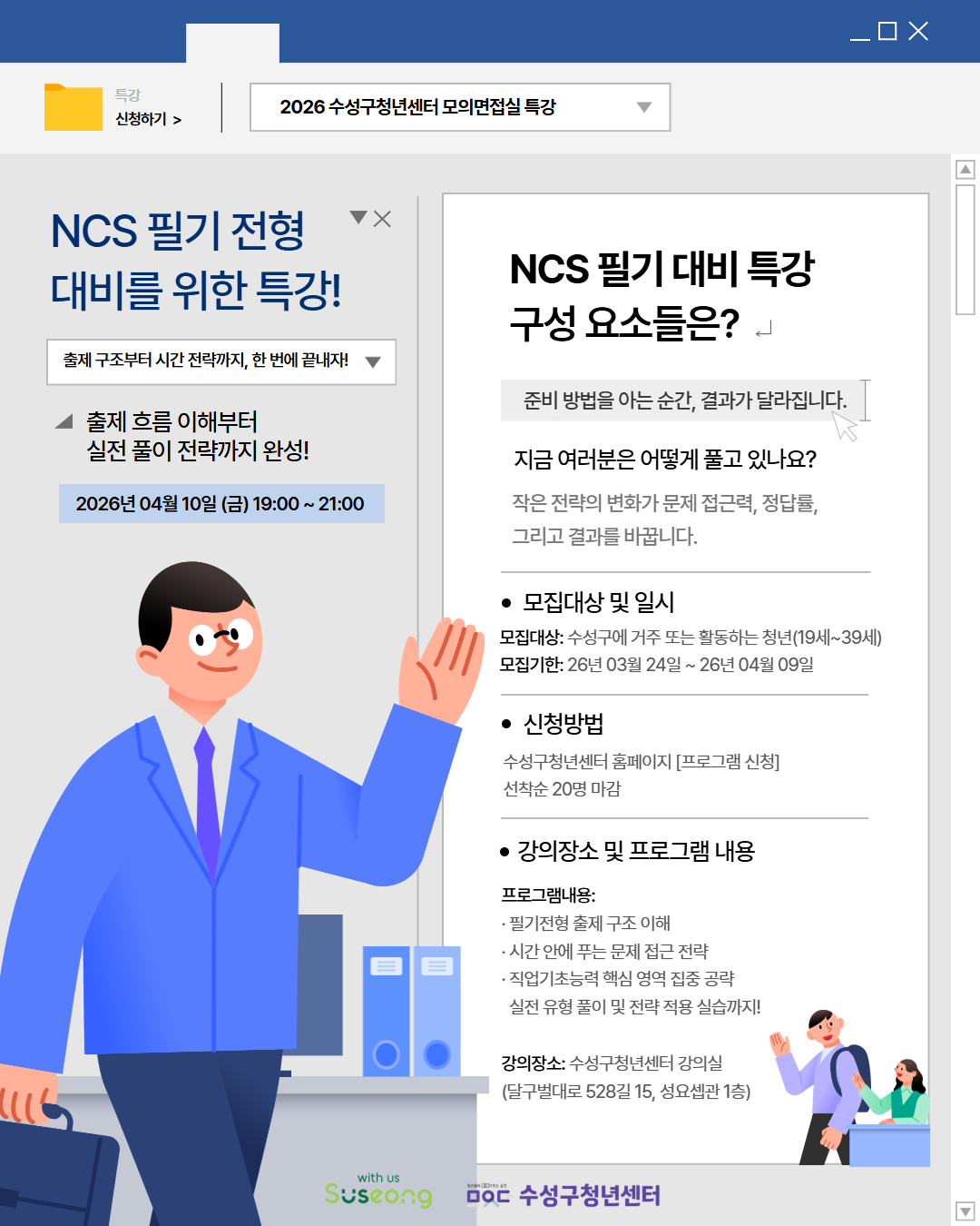 2026 모의면접실 [NCS 필기 전형] 특강작성자 : 수성구청년센터 작성일 : 26-03-24