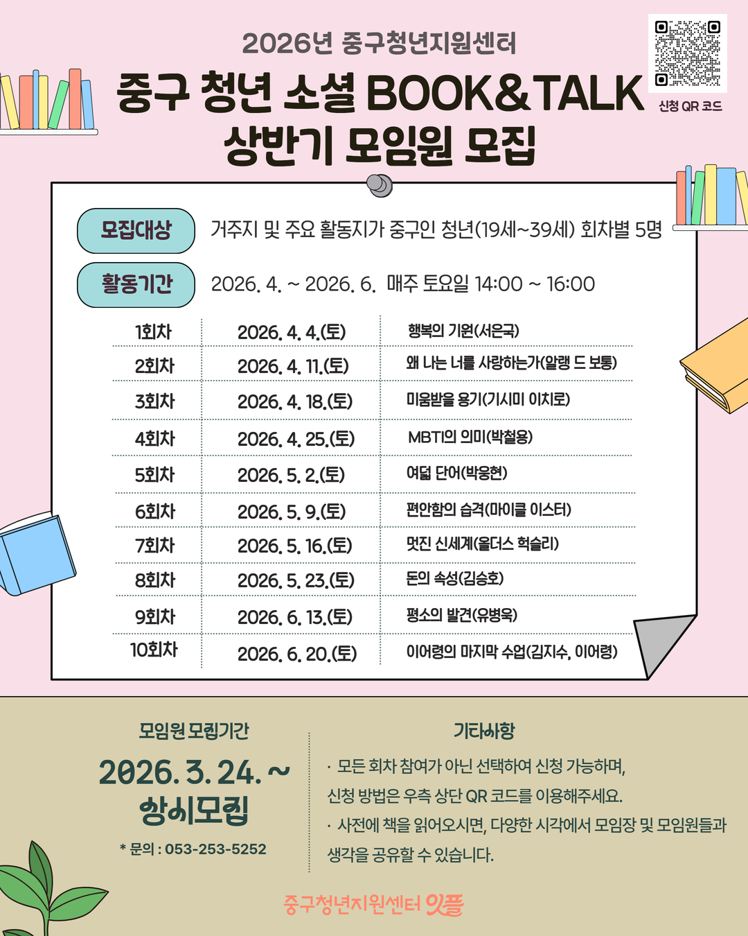 [중구청년지원센터] 중구 청년 소셜 북앤톡 모임원 모집작성자 : 김주호 작성일 : 26-03-24