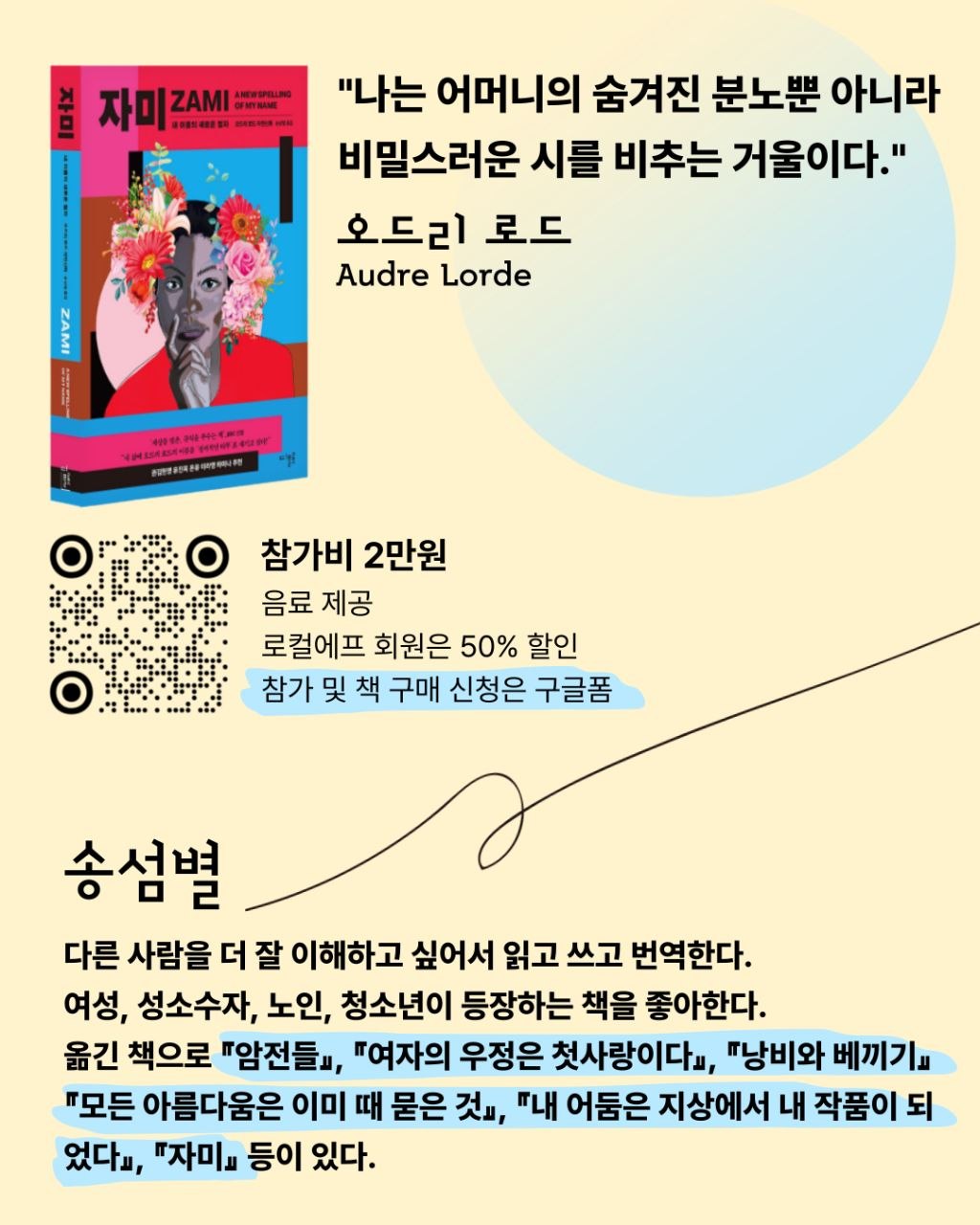 <자미> 번역가 송섬별 북토크 「퀴어한 언어와 번역의 세계」에 여러분을 초대합니다. 🌈📚