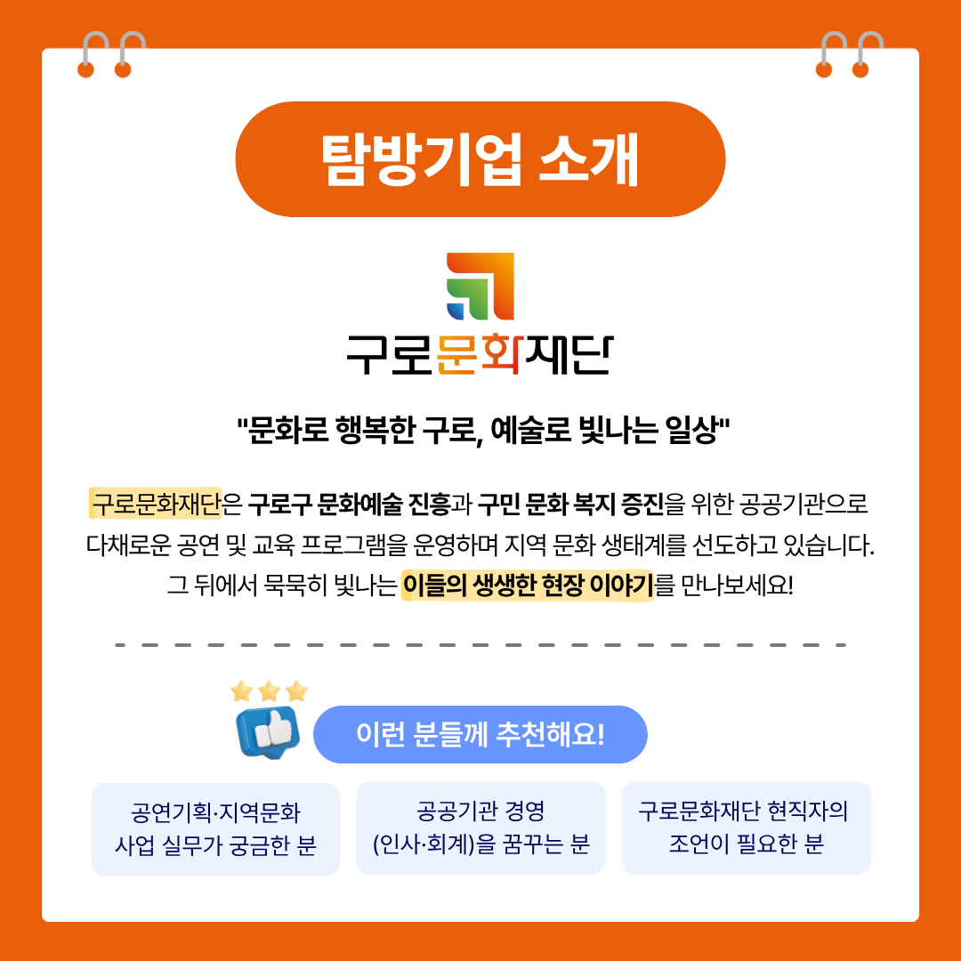 - 구로문화재단(구로아트밸리 예술극장) 기업 탐방 기회