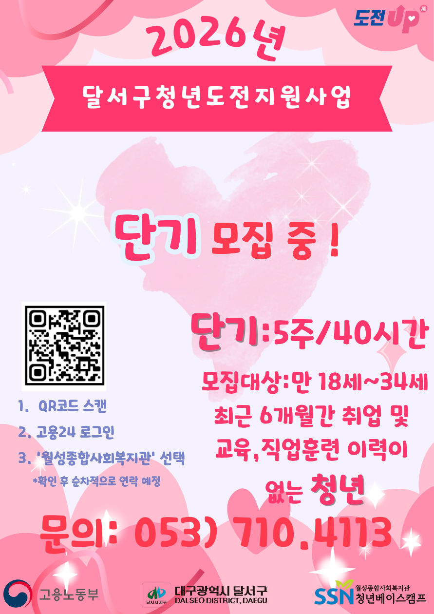 2026년 청년도전지원사업 단기 모집중!!작성자 : 김희숙 작성일 : 26-04-06