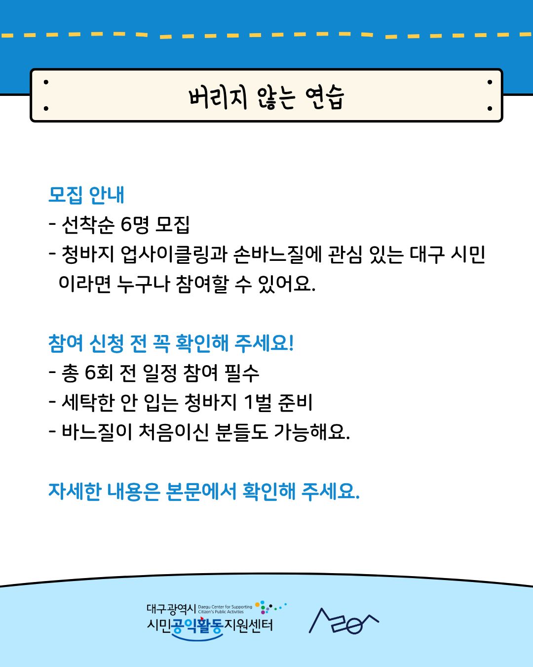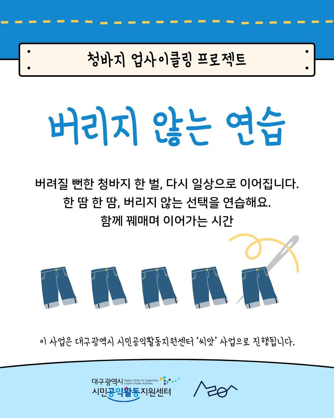 청바지 업사이클링과 손바느질에 관심 있는 대구 시민