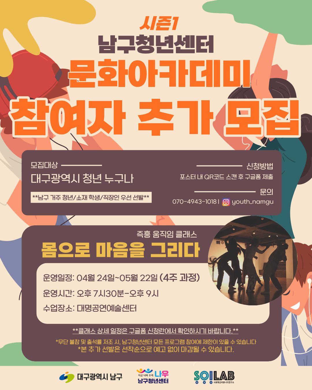 📢 남구청년센터 문화아카데미 참여자 추가 모집
