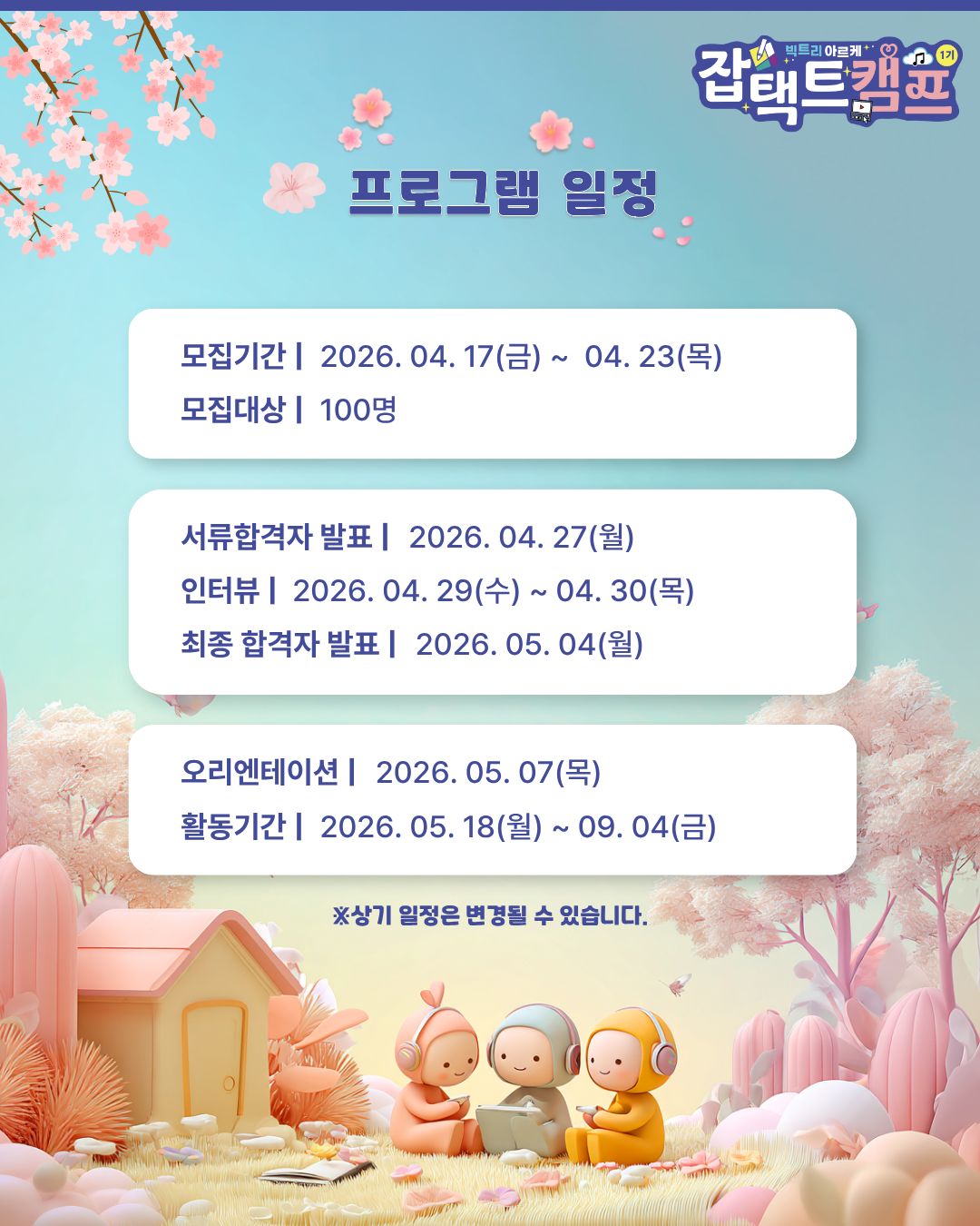 고립·은둔 청년 '잡택트 캠프 1기' 참여자 모집작성자 : 젊프 작성일 : 26-04-20