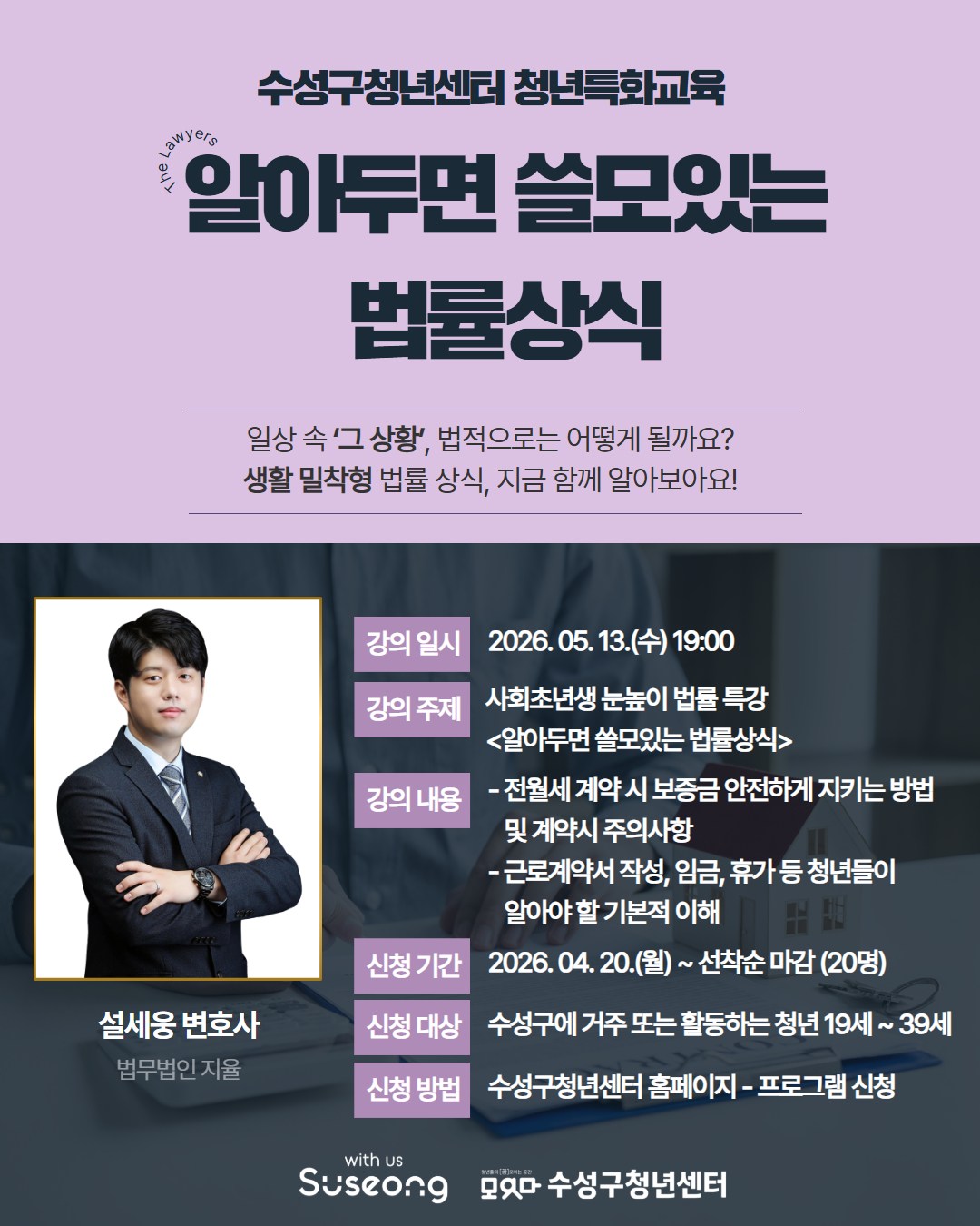 <알아두면 쓸모있는 법률상식> 특강 안내작성자 : 수성구청년센터 작성일 : 26-04-20