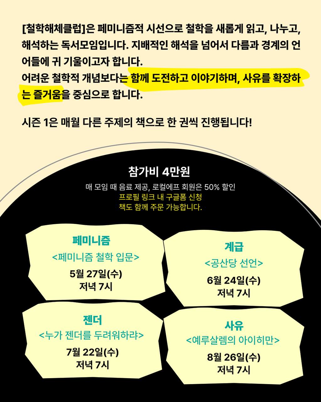 대구여성주의문화운동단체 로컬에프에서 독서모임 [철학해체클럽] 시즌1을 진행합니다!
