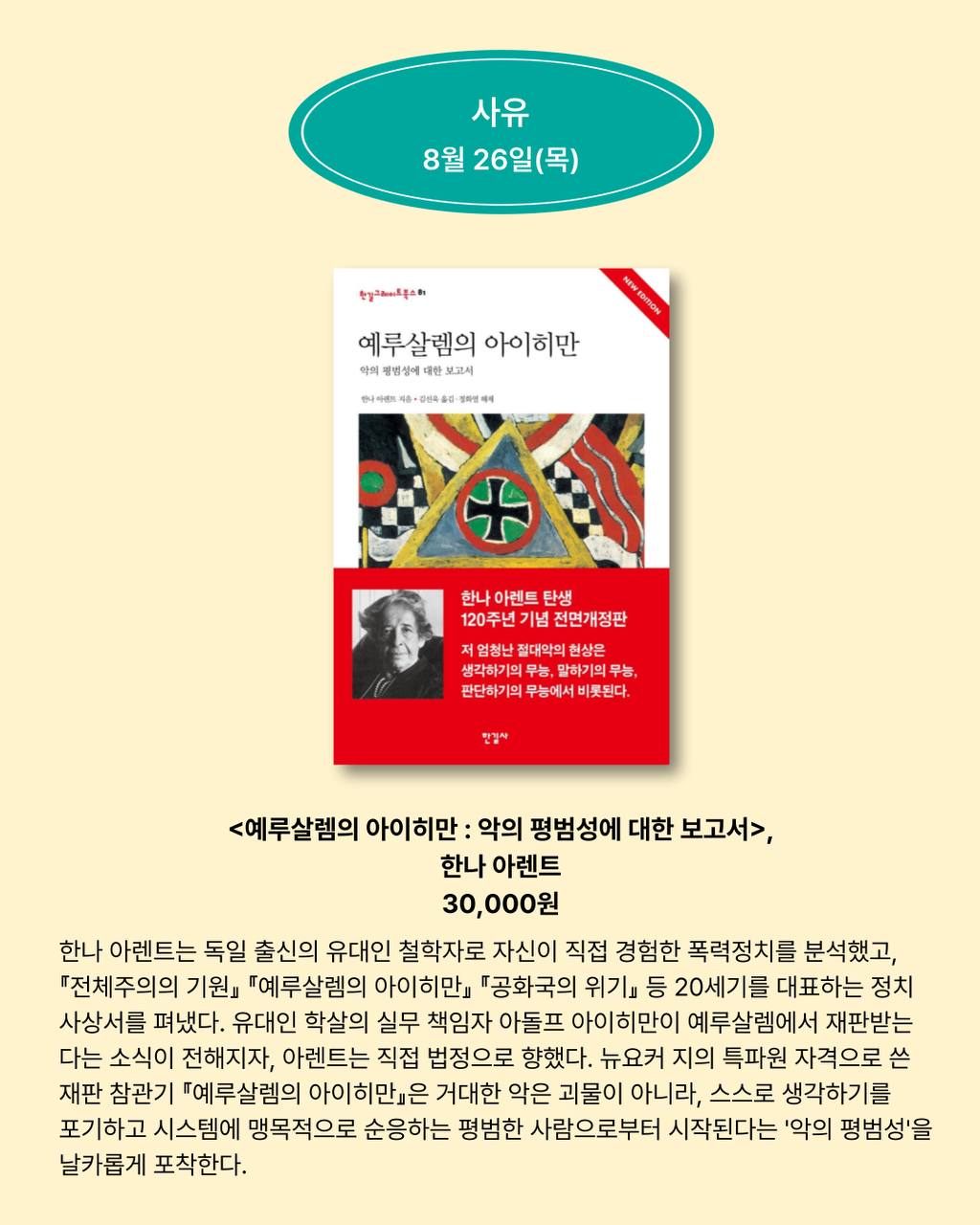 - 4회차 <예루살렘의 아이히만>, 한나 아렌트
