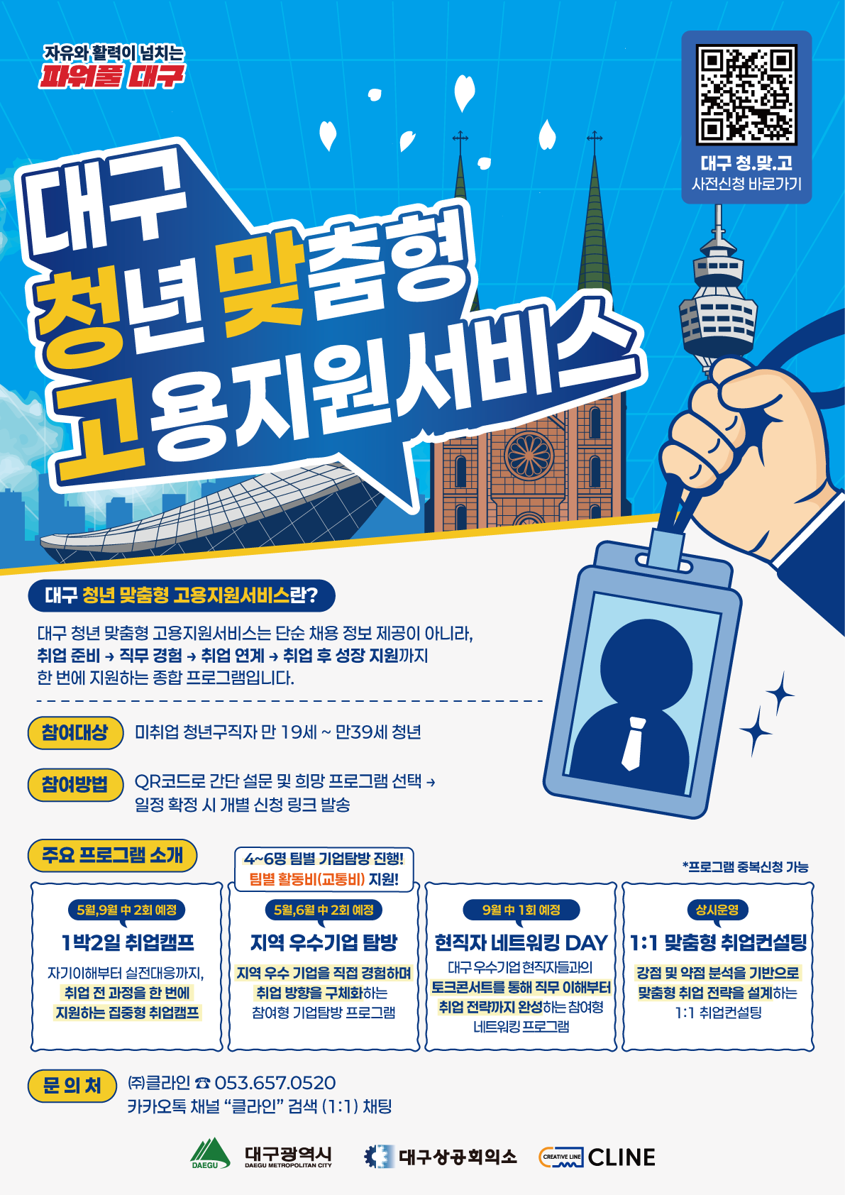 대구 청년 취업지원 떴다🔥 취업캠프 + 기업탐방 + 현직자만남 + 1:1컨설팅까지!작성자 : 이승환 작성일 : 26-04-29