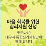 코로나19로 심리적 어려움을 겪고 있는 분들을 위해 대구시에서는 <코로나19 대구시 통합심리지원단>을 구성하였습니다.