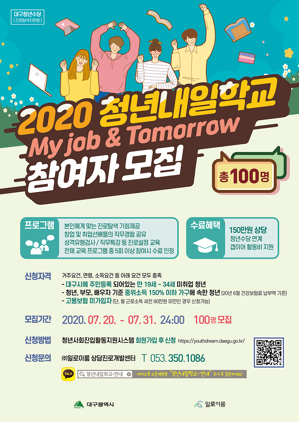 「2020 청년 내일(My Job&Tomorrow) 학교」하반기 참여청년을 모집합니다.