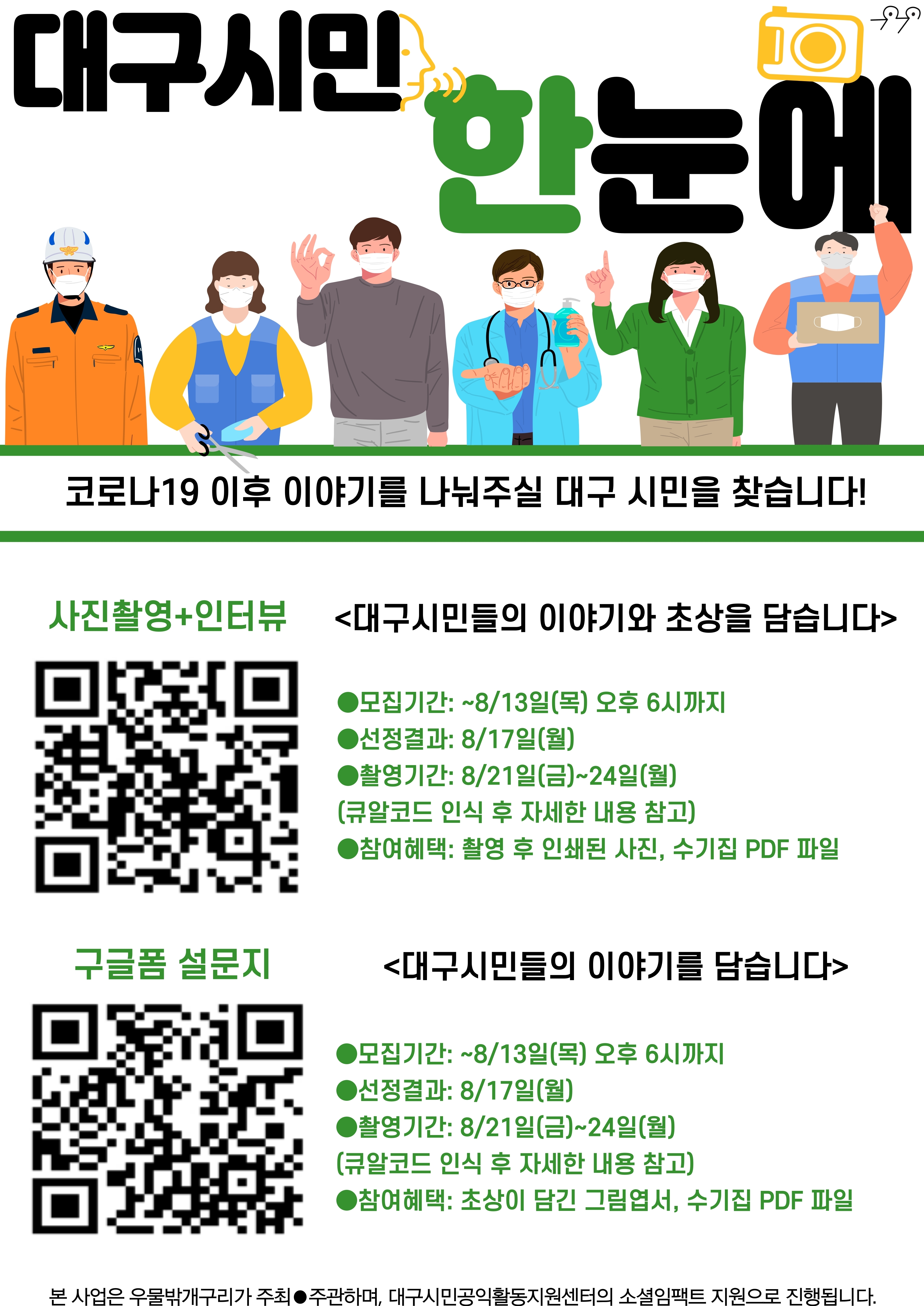 본 사업은 대구시민공익활동지원센터 소셜임팩트 사업으로 진행됩니다.