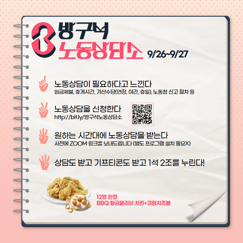 ☞ 사전신청 : http://bit.ly/방구석노동상담소 (9. 16. ~ 9. 24.)