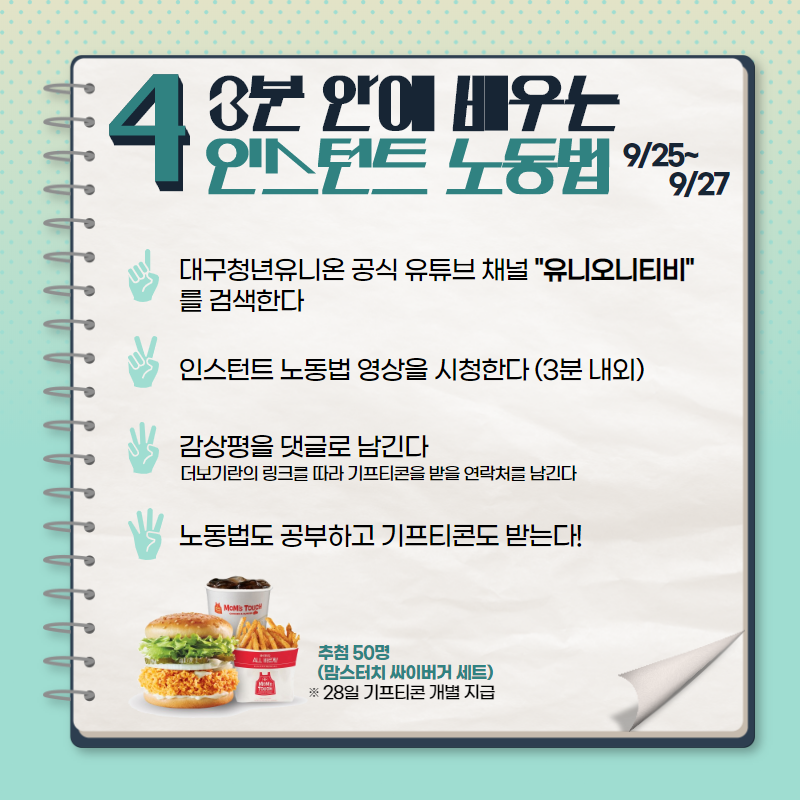 재미있게 노동법도 공부하고 선물도 받는 알찬 프로그램으로 구성하였으니 많은 참여 바랍니다!