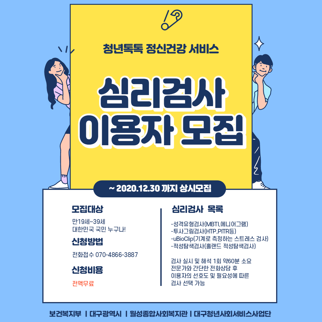 2020 청년톡톡 무료심리검사 이용자모집작성자 : 김금희 작성일 : 20-09-23