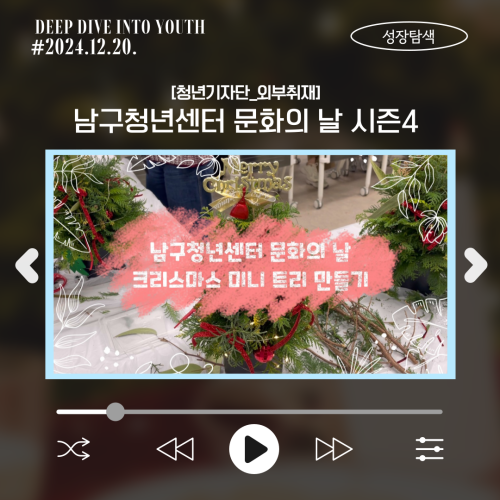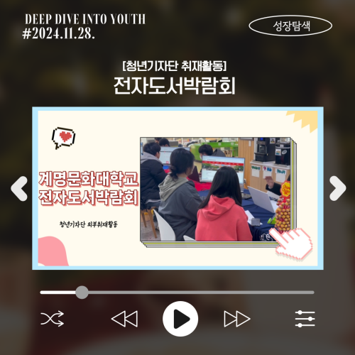 청년기자단이간다 리포트스크랩 청년기자단 소개 검색 청년기자단등록 구분 : 카테고리 전체 2026 2025 2024 2023 2022 2021 2020 2019 기간 설정 전체선택 전체 : 908 (15/114 page) [기획영상] 독서를 즐기는 청년들의 새로운 방식 [청년상담소] 지역 청년을 위한 상담운영 성과와 발전방향 포럼 [청년기자단 외부취재] 남구청년센터 문화의날 시즌 4 현장을 가다! [청년희망적금]청년들이 필요로 하는 금융교육-청년희망적금과 알아보는 연말정산 [청년기자단]과 함께한 미리크리스마스 [청년기자단] 취업스트레스 힐링프로그램_아크릴 무드등 만들기 [청년정책네트워크] 반짝반짝 청년정책 불켜졌네 [청년기자단 취재활동] 전자도서박람회 11 12 13 14 15 16 17 18 19 20