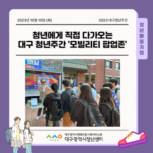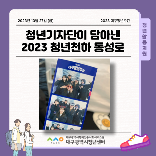 청년기자단이간다 리포트스크랩 청년기자단 소개 검색 청년기자단등록 구분 : 카테고리 전체 2026 2025 2024 2023 2022 2021 2020 2019 기간 설정 전체선택 전체 : 908 (27/114 page) [2023 대구청년주간] 모빌리티 팝업존 : 영남대학교 #대구광역시청년센터,#청년주간,#모빌리티팝업존,#청년기자단 [청년프리랜서지원사업] 대구 프리랜서들의 새로운 걸음을 위해 #대구광역시청년센터,#프리랜서지원사업,#청년기자단 [2023청년주간]청년기자단이 담아낸 ‘2023 청년천하 동성로’ #대구광역시청년센터,#청년주간,#청년천하동성로 [2023청년주간]'청년천하동성로' 두 번째 날 현장 속으로 #대구광역시청년센터,#청년주간,#청년천하동성로 [2023청년주간]청년에게 직접 다가오는 대구 청년주간, ‘모빌리티 팝업존’ #대구광역시청년센터,#모빌리티팝업존,#청년주간 [청년기자단 기획기사]우리가 대구에 남은 이유3- 김선빈 감독 #대구사람,#영화감독,#단편영화,#베리어프리,#흔듸영화제 [2023 청년주간] 제9회 대구청년주간 ‘청년천하 동성로’ 개막식 #대구광역시청년센터,#청년주간,#청년천하동성로 [동친쌀롱] 놀러와요! 모여봐요! '이상한 숲' #환경,#동물,#나무,#숲,#사람 21 22 23 24 25 26 27 28 29 30