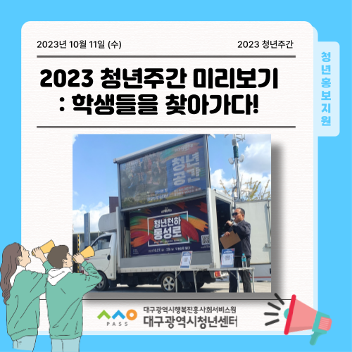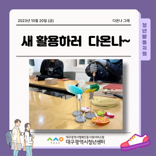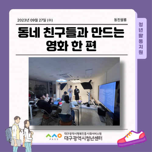 청년기자단이간다 리포트스크랩 청년기자단 소개 검색 청년기자단등록 구분 : 카테고리 전체 2026 2025 2024 2023 2022 2021 2020 2019 기간 설정 전체선택 전체 : 908 (28/114 page) [청년기자단 BudDY] 청년들도 함께하는 여성 up 엑스포! #대구광역시청년센터,#여성up엑스포,#청년기자단,#대구광역시,#청년센터,#청년 [다온나그래] 새 활용하러 다온나~ #새활용,#재활용,#청년센터,#청년,#병뚜껑키링,#바다유리목걸이,#다온나그래,#친환경,#비치코밍 [청년기자단 기획기사] 대구 어린이 기자 클럽, 미래를 밝히는 작은 꿈나무들의 발자취 #대구광역시청년센터,#대구어린이기자클럽,#어린이기자단 [동친쌀롱] 동네 친구들과 만드는 영화 한 편 [청년도전지원사업 젊핑] 올가을 최고의 선택, 젊핑과 함께 도전하자! #청년도전지원사업,#젊핑 [청년기자단BudDY] 2023 청년주간 미리보기 : 학생들을 찾아가다! #2023청년주간,#모빌리티팝업존,#경북대학교북문,#청년천하동성로,#228스퀘어,#대구청년행사,#대구청년주간 [청년공동체활성화사업] 아무런 시네마 11번째 상영회 #대구청년센터,#대구청년기자단,#청년기자단BUDDY,#청년공동체활성화사업,#청년지원사업,#아무런,#아무런시네마,#11번째상영회,#무영당,#청년정책 [동친쌀롱] 라틴댄스 바야에서 만나는 화려한 리듬! 9회차 프로그램 #동친쌀롱,#라틴댄스,#청년활동,#청년공간지원 21 22 23 24 25 26 27 28 29 30