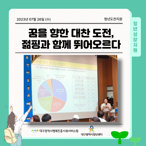 청년기자단이간다 리포트스크랩 청년기자단 소개 검색 청년기자단등록 구분 : 카테고리 전체 2026 2025 2024 2023 2022 2021 2020 2019 기간 설정 전체선택 전체 : 908 (31/114 page) [청년학교 딴길] ‘농창업진로학과', 도시 농사와 스마트 팜 인재 양성의 새로운 발판 [동친쌀롱] 다 함께 뮤지컬로 스트레스 해소할까? [청년정책네트워크] 2023 대구청년정책네트워크 참여기구 교류회, 그날의 이야기 [청년마음돌봄사업 집단상담] ‘온전한 나’로서의 성장과 치유의 공간 [청년학교 딴길] 위풍당당 공구생활학과 내가 직접 만드는 나의 가구! [청년공동체활성화] ‘교육협동조합 세움’, 잡아주고 끌어주며 ‘함께’ 나아가는 공동체 [청년학교딴길] 독립출판학과 - 책으로 펼쳐지는 예술의 세계 [청년도전지원사업] 꿈을 향한 대찬 도전, 젊핑과 함께 뛰어오르다 31 32 33 34 35 36 37 38 39 40