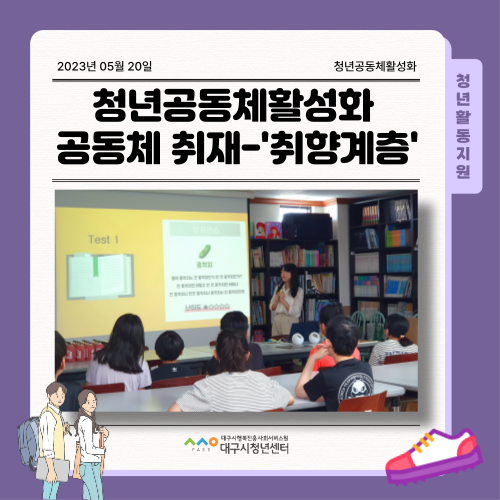 청년기자단이간다 리포트스크랩 청년기자단 소개 검색 청년기자단등록 구분 : 카테고리 전체 2026 2025 2024 2023 2022 2021 2020 2019 기간 설정 전체선택 전체 : 908 (36/114 page) [청년기자단BudDY]동성로 축제, 동성로와 시민에 활기를 불어넣다~! [청년 일자리 잇기 YES! 매칭] 「역량강화지원」 일경험청년 네트워크 모임’을 통해 청년들의 관계망을 구축하고 성장을 응원하다. [청년공동체활성화] 공동체 취재_'취향계층'_각자의 '취향'을 드넓게 펼칠 수 있는 우리 사회를 위하여 [청년도전지원사업 젊핑 도전+ 시즌1]청년들의 든든한 성장촉진제 도전+ 로 돌아오다. [청년도전지원사업] 젊핑 - 도약의 첫걸음 내딛다. [청년마음돌봄사업]힐링프로그램 시즌1_감정을 그림으로, 그림을 공감으로 [청년마음돌봄사업] 힐링프로그램시즌1-내가 만든 마음의 글, 너와 나의 마음글로 [청년정책네트워크] 2023 청년정책네트워크 위촉식, 청년들의 목소리를 정책으로 이어가다! 31 32 33 34 35 36 37 38 39 40