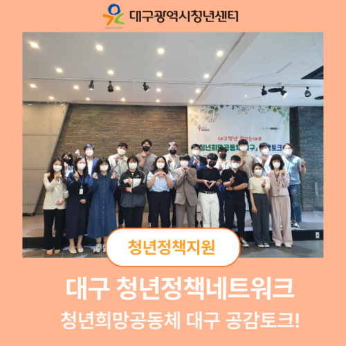 청년기자단이간다 리포트스크랩 청년기자단 소개 검색 청년기자단등록 구분 : 카테고리 전체 2026 2025 2024 2023 2022 2021 2020 2019 기간 설정 전체선택 전체 : 908 (52/114 page) [청년공동체활성화] 영화 GV 상영회! #대구광역시청년센터,#대구시청년센터,#대구청년센터,#대구청년,#청년활동지원,#청년공동체활성화,#이하루감독 [2022 청년상담소] 진로토크 시즌1, 라이브 커머스 어떻게 해요? #대구광역시청년센터,#대구시청년센터,#대구청년센터,#대구청년,#청년성장지원,#진로토크,#라이브커머스,#청년상담소 [2022 청년지갑특공대] 나에게 맞는 보험 #대구광역시청년센터,#대구시청년센터,#대구청년센터,#대구청년,#청년지갑특공대,#청년성장지원,#보험 [2022 청년정책네트워크] 청년기자단, 청년정책네트워크 위촉식에 가다! #대구광역시청년센터,#대구시청년센터,#대구청년센터,#대구청년,#청년정책지원,#대구청년정책네트워크 [2022 청년상담소] 진로토크 시즌1, 21세기 선생님과의 소통의 장 #대구광역시청년센터,#대구시청년센터,#대구청년,#청년성장지원,#진로토크,#청년상담소 [2022 청년지갑특공대] 제대로 된 대출방법 강의 ‘막막한 대출 어떻게 시작할까’ #청년지갑특공대,#대구광역시청년센터,#대구시청년센터,#대구청년센터,#대구청년,#지갑구출작전시즌1 [2022 대구청년정책네트워크] 청년희망공동체 대구 공감토크! #대구광역시청년센터,#대구시청년센터,#청년희망공동체,#공감토크,#청년활동지원 [2022 대구세계가스총회] 서포터즈 발대식 #대구광역시청년센터,#대구시청년센터,#대구청년센터,#대구청년,#서포터즈발대식,#대구세계가스총회 51 52 53 54 55 56 57 58 59 60