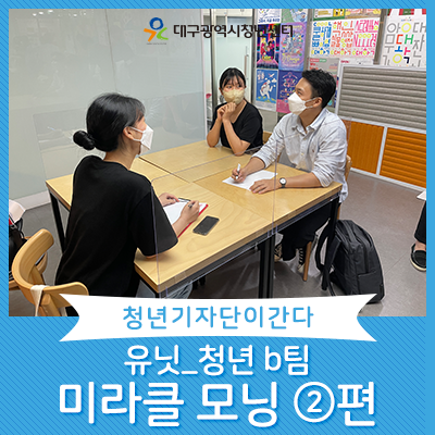 청년기자단이간다 리포트스크랩 청년기자단 소개 검색 청년기자단등록 구분 : 카테고리 전체 2026 2025 2024 2023 2022 2021 2020 2019 기간 설정 전체선택 전체 : 908 (61/114 page) [습관을 바꾸는 한달 챌린지] ②미라클모닝, 그래서 어땠어요? #미라클모닝,#대구광역시청년센터,#청년기자단 [2021 대구청년학교 딴길2] 지구를 위한 학과 인터뷰 #대구청년학교딴길2,#지구를위한학과,#청년성장지원,#예스매칭 [대구 ㅈㅂㅈㅇ!] 대구, 정보좀요! ③ 문화생활편 #대구광역시청년센터,#청년홍보지원,#기획기사4팀,#청년기자단 [길을 찾는 청년들을 위한 나침반] ③ 정책 수혜자를 만나다 #청년기자단,#대구광역시청년센터,#기획기사1팀,#청년홍보지원 <청년에게 듣다 – 소설가 이나리> #소설가이나리,#청년홍보지원,#청년기자단,#대구광역시청년센터 [습관을 바꾸는 한달 챌린지] ①미라클 모닝, 정말 기적이 찾아 올까요? #미라클모닝,#청년홍보지원,#청년기자단,#대구광역시청년센터 [2021 디지털활용 청년일자리 YES!매칭] 자연을 담은 옷, 의류제조업체 한마를 만나다! #청년성장지원,#한마,#예스매칭,#대구광역시청년센터,#청년기자단 [2021 청년공동체활성화사업] 모디어팀의 어른이집 프로그램‘프리마켓’에 다녀오다. #청년공동체활성화,#모디어,#청년활동지원,#대구청년주간 61 62 63 64 65 66 67 68 69 70