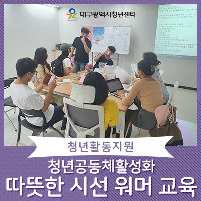 청년기자단이간다 리포트스크랩 청년기자단 소개 검색 청년기자단등록 구분 : 카테고리 전체 2026 2025 2024 2023 2022 2021 2020 2019 기간 설정 전체선택 전체 : 908 (66/114 page) [2021 청년공동체활성화사업] 따뜻한 시선, “따뜻한 시선을 가진 사람들, 워머” #청년공동체활성화,#청년활동지원,#청년기자단,#따뜻한시선 [2021 청년상담소] 두 번째 진로토크 ‘배움을 기획하는 교육컨설턴트’ #청년상담소,#진로토크,#교육컨설턴트,#캐럿글로벌,#청년성장지원 [2021 청년공동체활성화사업] 청년기자단, 네트워크 모임에 가다! #청년공동체활성화,#청년활동지원,#청년기자단,#네트워크모임 [2021 청년기자단이 간다] 대구청년 꿈꾸는 대로_지구,음식,사랑_더커먼 강경민 대표 #대구광역시청년센터,#청년기자단,#대구청년꿈꾸는대로,#영남일보,#강경민대표,#더커먼 [2021 대구청년정책네트워크] 청년기자단, 복지문화분과회의에 가다! #대구광역시청년센터,#청년기자단,#복지문화분과회의,#대구청년정책네트워크,#청년정책지원 [2021 청년상담소] 첫 번째 진로토크 '크라우드 펀딩으로 비즈니스 시작하기' #청년성장지원,#대구광역시청년센터,#진로토크,#크라우드펀딩,#강태구대표 [2021 청년기자단이 간다] 책으로 마음 잇기 ‘북멘토’ 촬영, 오대국 대표를 만나다! #대구광역시청년센터,#청년기자단,#오대국대표,#sk브로드밴드북멘토,#에스디지엔텍 [2021 청년기자단이 간다] 대구청년 꿈꾸는 대로_당신의 잡생각을 응원합니다_잡생각연구소 이재형 대표 #대구광역시청년센터,#청년기자단,#잡생각연구소,#이재형대표,#대구청년꿈꾸는대로 61 62 63 64 65 66 67 68 69 70
