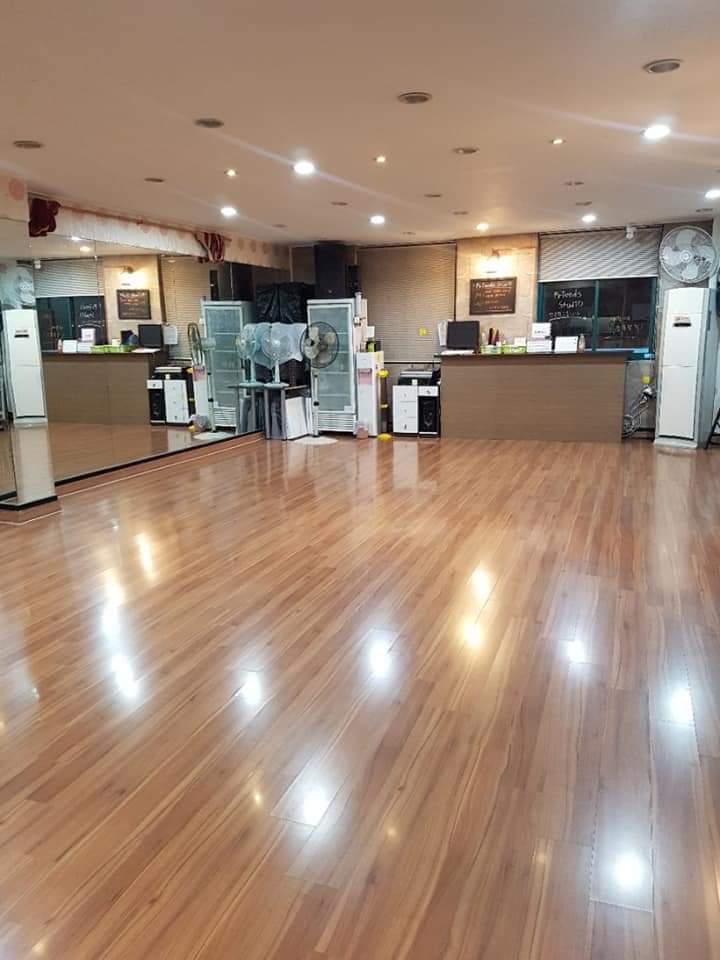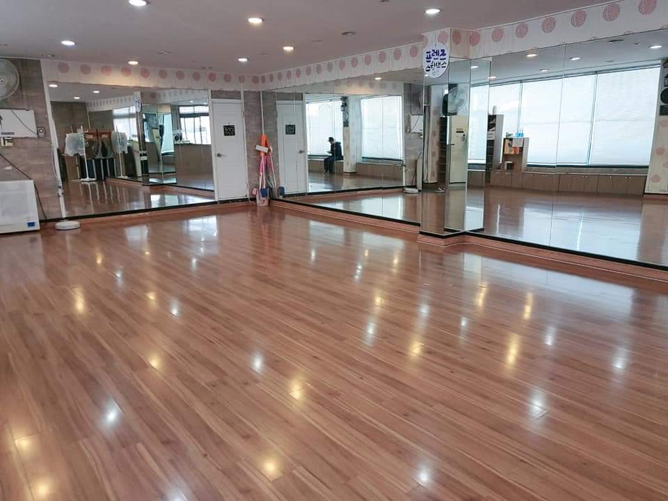 바닥은마루이며 전면거울,음향시설,정수기 구비되어있습니다.