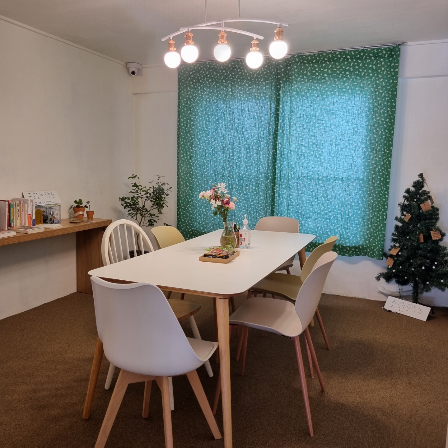 책을 빌려볼 수 있는 도서관과 7인용 테이블이 구비되어 있습니다.