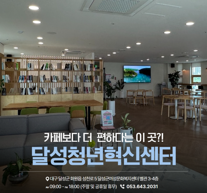 대구 달성군 화원읍 성천로 5 (설화리, 달성군여성문화복지센터) 별관 3-4층, 달성청년혁신센터