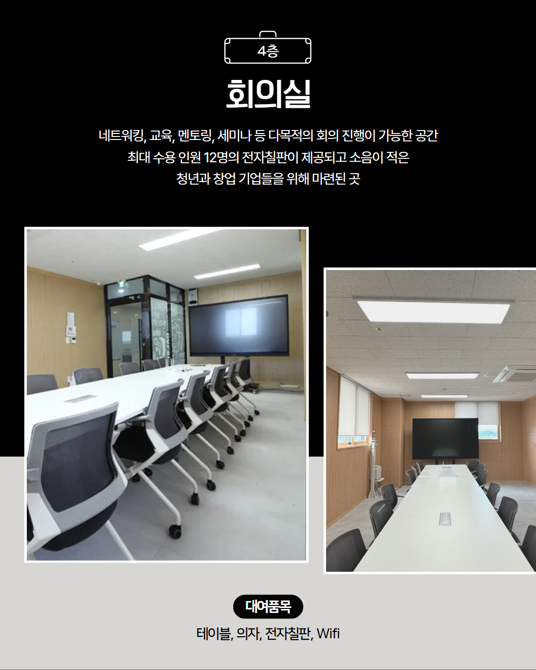 4층 회의실 : 교육, 회의 등 독립적으로 사용할 수 있는 공간