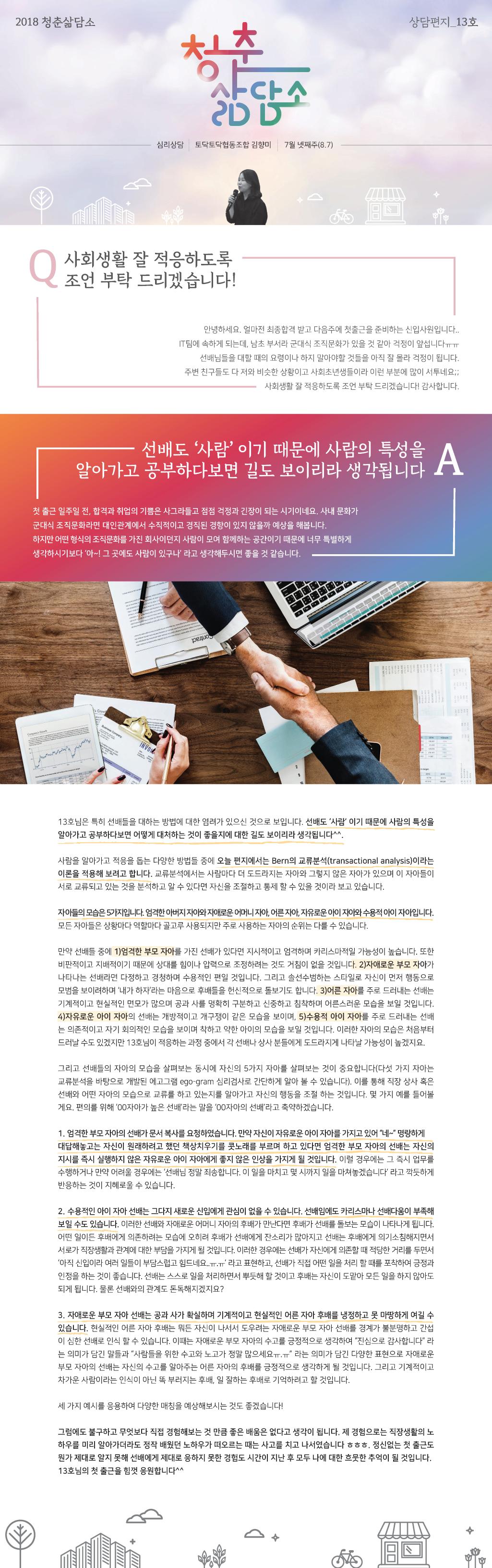 [ 심리상담 ] 취업 그이후, 사회생활로의 첫 발디딤