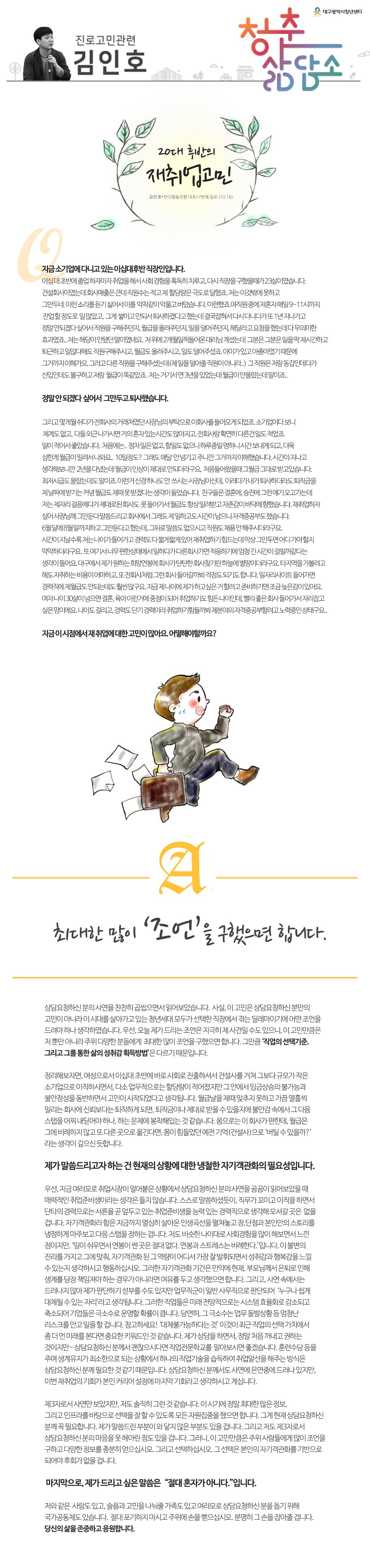 [ 진로상담 ] 20대 후반이라면 누구나 한번쯤은 겪게 될 진로재탐색과 재취업에 대한 고민