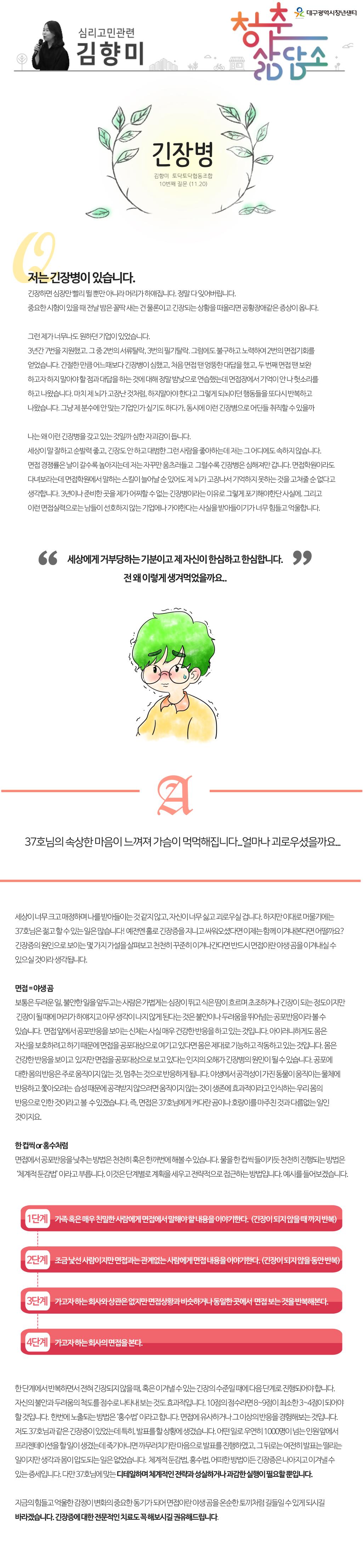 [ 심리상담 ] 저는 무슨일만하면 두근두근 긴장병이 있어요..