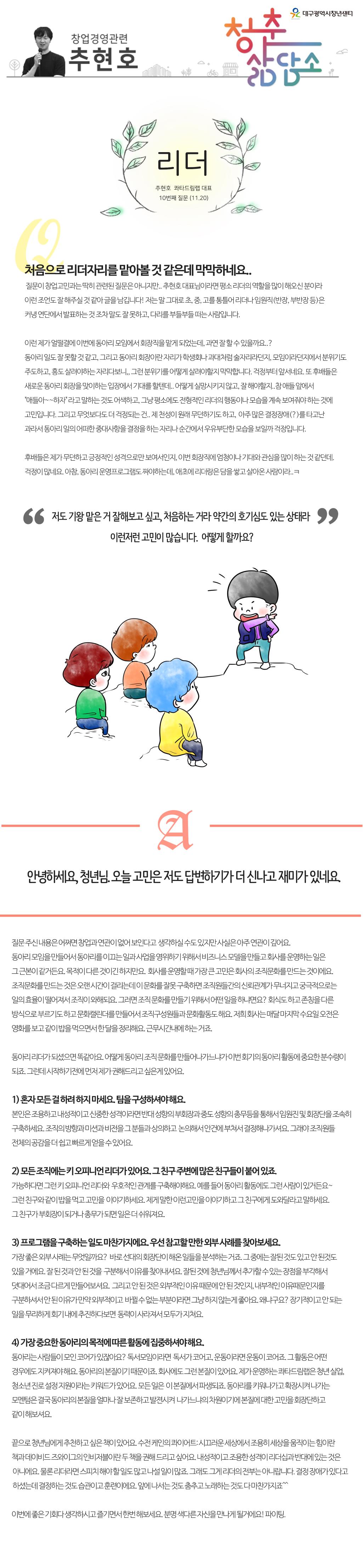 [ 창업상담 ] 누군가를 이끌어 간다는 것, '리더'라는 자리