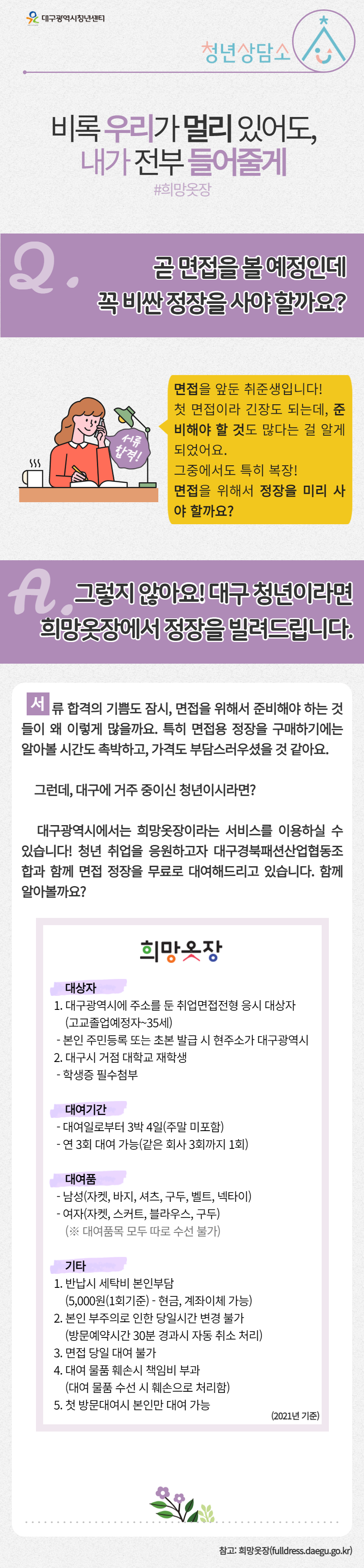 [ 청년정책상담 ] 면접을 볼 예정인데 정장을 미리 사야 할까요?