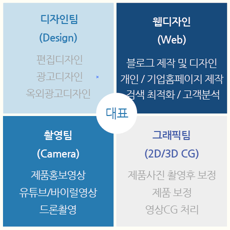 컨텐츠를 제작하는 종합광고디자인 회사입니다. 디자인분야 부터 홈페이지개발 영상제작 등 기업들의 마케팅활동에 있어