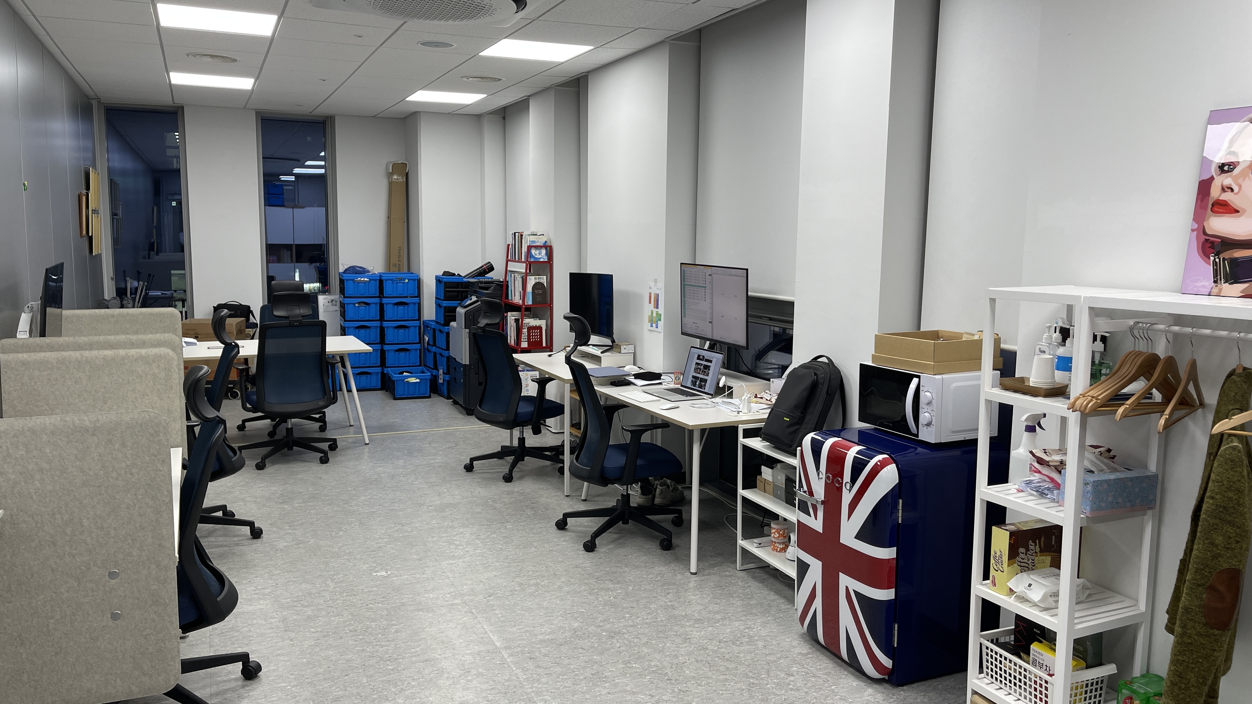 - 입사하시게 되면 대구삼성창조캠퍼스 내에 있는 벤처오피스에서 근무합니다. - 호칭은 서로의 이름을 불러요. (예. ○○님) - 오피스 내에는 항상 음악이 흐르고 있어요. - 업무환경의 유연성을 위해 데스크탑 보다는 노트북 사용을 권장합니다. - 애플, 삼성, LG 등 원하는 브랜드의 모델명 선택하시면 구매 후 지급합니다. - 듀얼 모니터 활용 가능한 삼성 32인치 4K 모니터 제공합니다. (모니터암도 설치해드려요.) - 데스커 모션데스크(W1400xD700) 및 시디즈 체어를 제공합니다. - Slack, Wrike, Notion 등을 활용한 스마트 워크 시스템을 도입하고 있어요. - '해피아워'라는 사내 프로그램을 통해 점심식사를 제공하고 있고 식대 제한은 없어요. - 10 to 7 하고 있고 연차는 1시간 단위로 자유롭게 사용 가능해요. - 입사하고 업무가 적응될 때까지 대표, 팀장이 적극 지원할게요. |