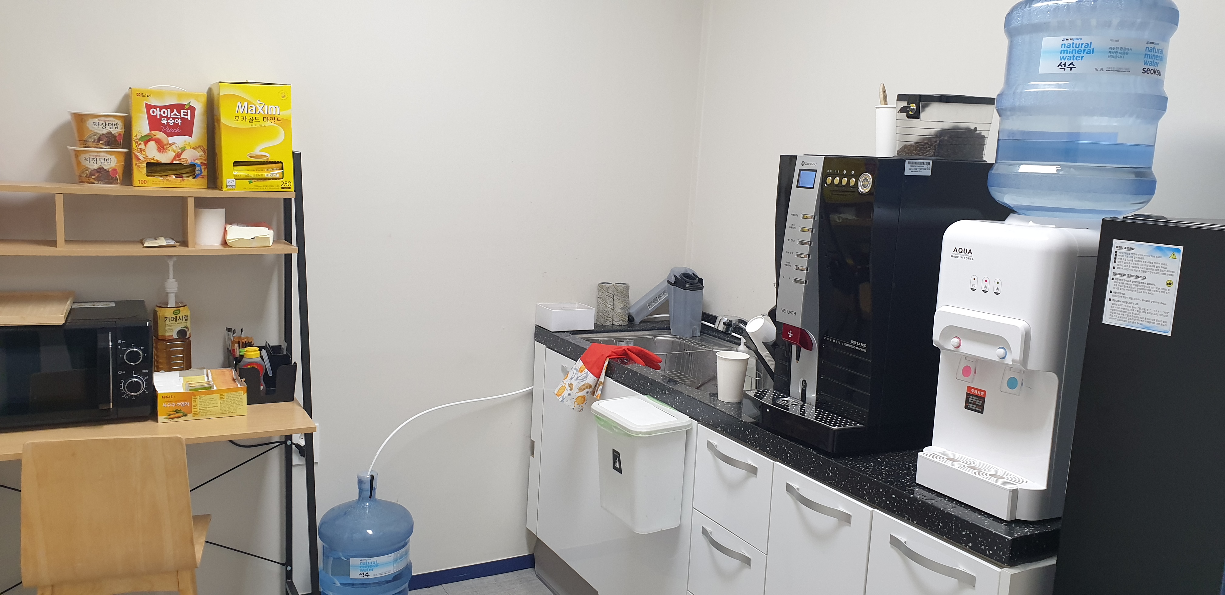 직원의 근무 환경은, 기본적으로 파티션형태로 구성된 책상과 의자 그리고 사무용 노트북과 모니터가 지급 됩니다. 업무는 2층 사무동, 그중에 지원팀 사무실에서 하게 되며, 별도의 탕비실과, 로비등이 구비되어 있습니다. 탕비실은 직원들을 위한 간단한 다과 및 차, 냉장고, 정수기, 커피머신, 테이블이 있습니다. 점심시간은 12시 부터 13시 까지 이며, 점심은 당연히 제공 됩니다. |