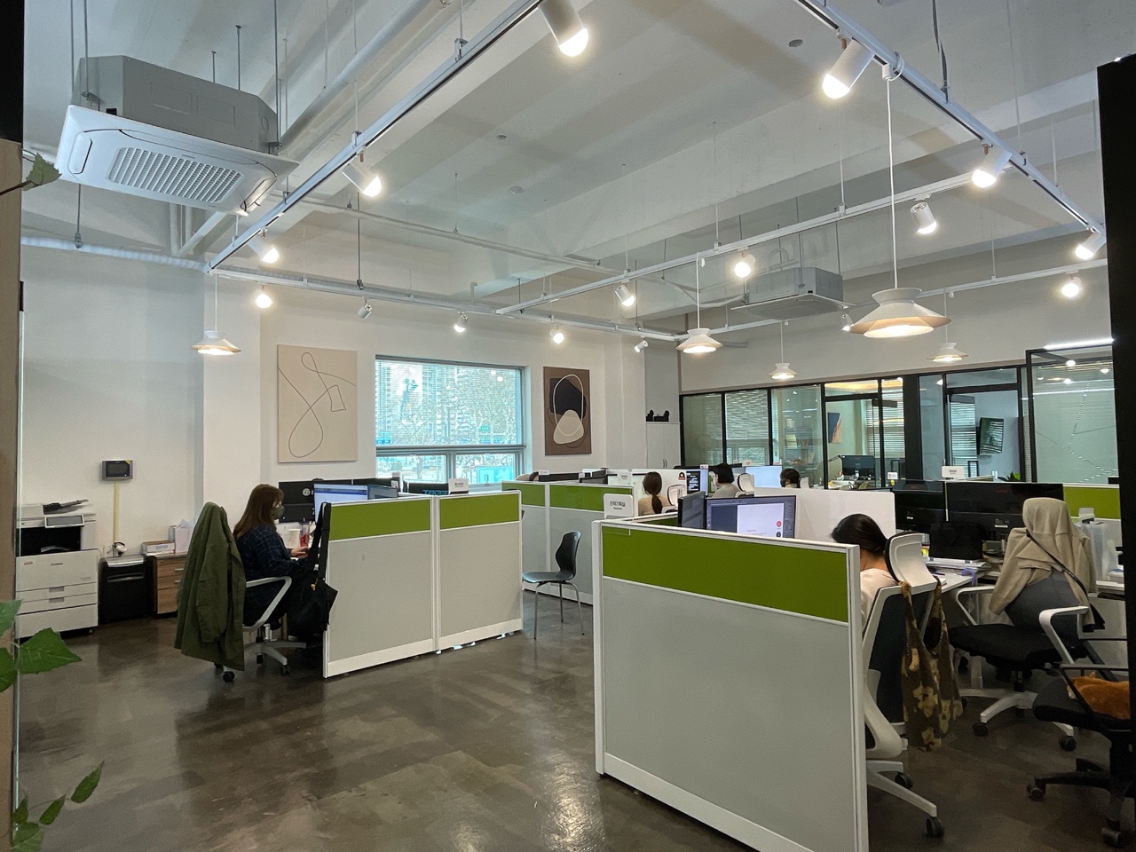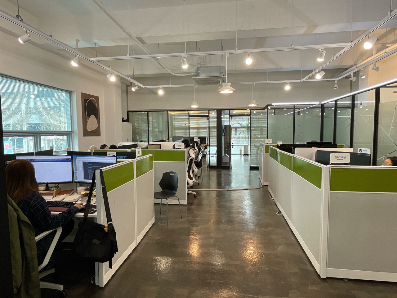 깨끗하고 쾌적한 실내에서 근무하게 되며, 기본적으로 개인책상과 PC(듀얼)가 제공됩니다. 그외 필기구나 업무에 필요한 대부분의 집기들이 구비되어 있으며, 자유롭게 활용할 수 있는 직원들의 휴식공간과 간식도 마련되어 있습니다. 고양이 1마리도 함께 거주하고 있습니다. |