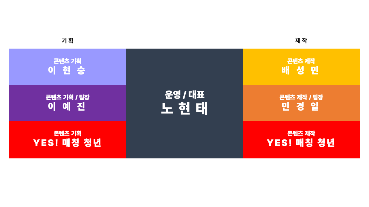 | 직급 | 대표 | 직무 | 운영, 기획 | ||